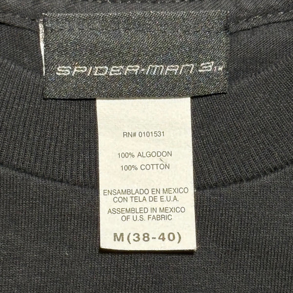 - 2007 Spider-Man 3 official merch promo tee / Venom logo in metallic silver / Spider-Man 3 tag / 100% cotton / Assembled in Mexico of US fabric