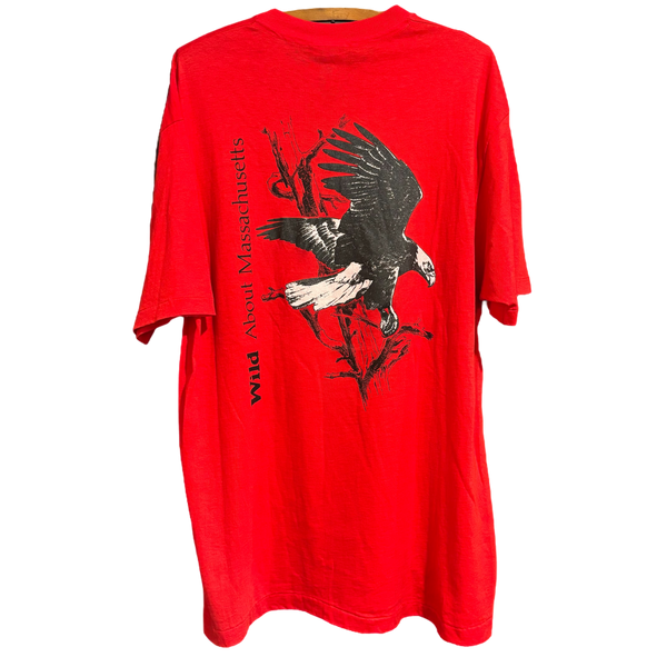 1990 Massachusetts Audubon Society ‘Wild about Massachusetts’ tee / Screen printed large eagle back hit / Made in USA / Hanes tag / 100% cotton / Single-stitch