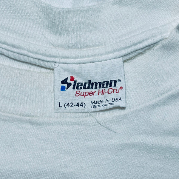 A Prairie Home Companion public radio show Powdermilk Biscuits ad promo tee / Has your family tried ‘em? Powdermilk. Heavens! They’re tasty! / Stedman Super Hi-Cru tag / Made in USA / 100% cotton / Single-stitch