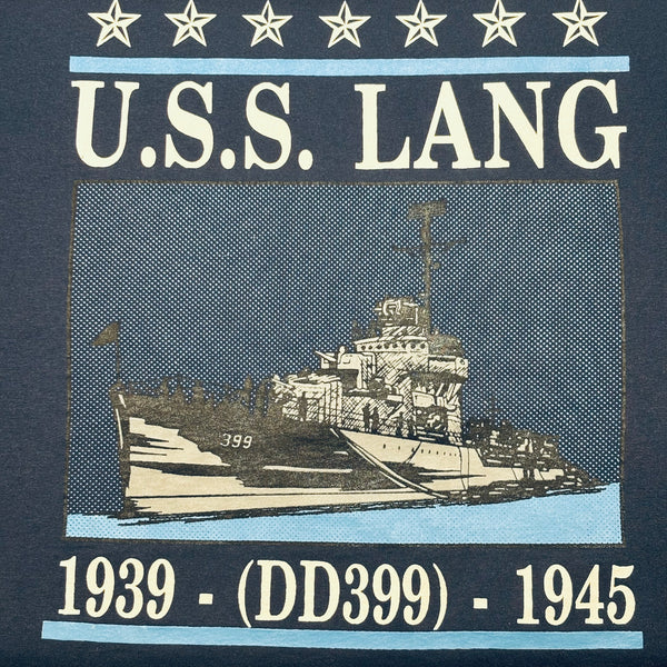 - USS Lang commemorative tee (DD399 1939-1945) / Best Fruit Of the Loom tag / Made in USA / 50% cotton 50% polyester / Single-stitch